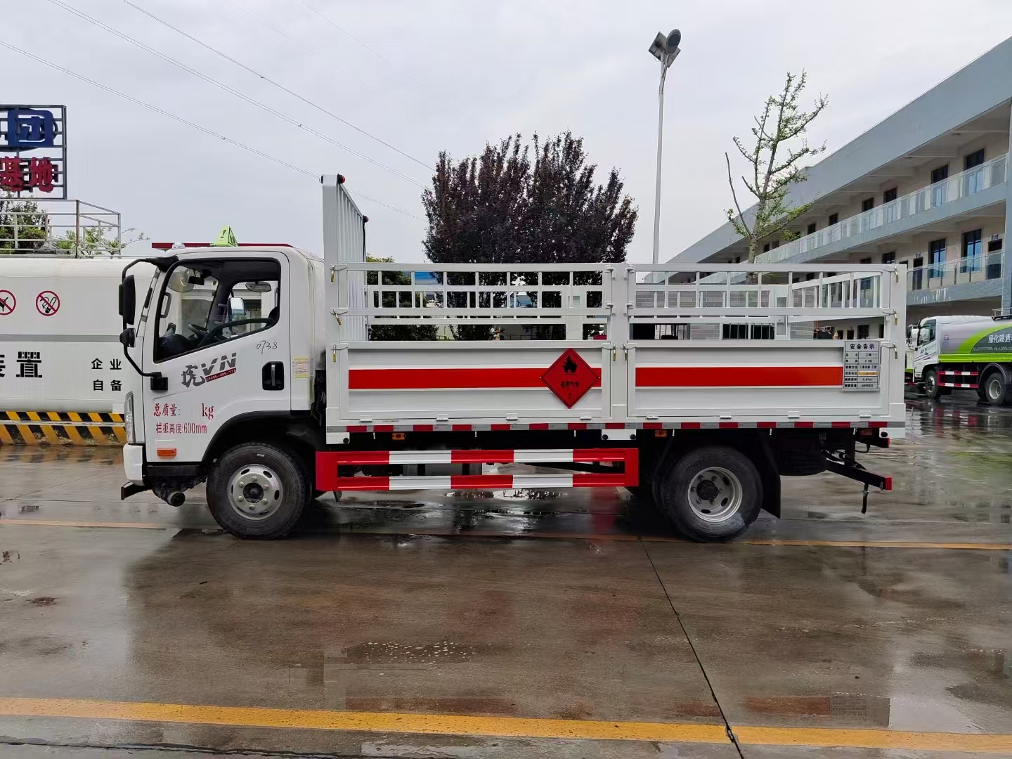 底盤配置 虎VN平頂單排駕駛室,錫柴CA4DB1A14E68,6GS42,270沖焊橋(速比4.875、輪距1640),速比4.875,7.50R1616層級真空胎,帶國產(chǎn)ABS,前盤后楔制動器,空調+電動門窗+中控鎖,氣喇叭,高架箱,80L鋁合金油箱,板簧3/7+3,前輪帶爆胎應急裝置,前碰撞預警+車道偏離輔助預警,前下防護,防飛濺擋泥板,排氣火花熄滅器,限速79km/h,北斗+GPRS行車記錄儀(帶視頻記錄功能),帶靜電拖地帶,NFH,危險品專用底盤