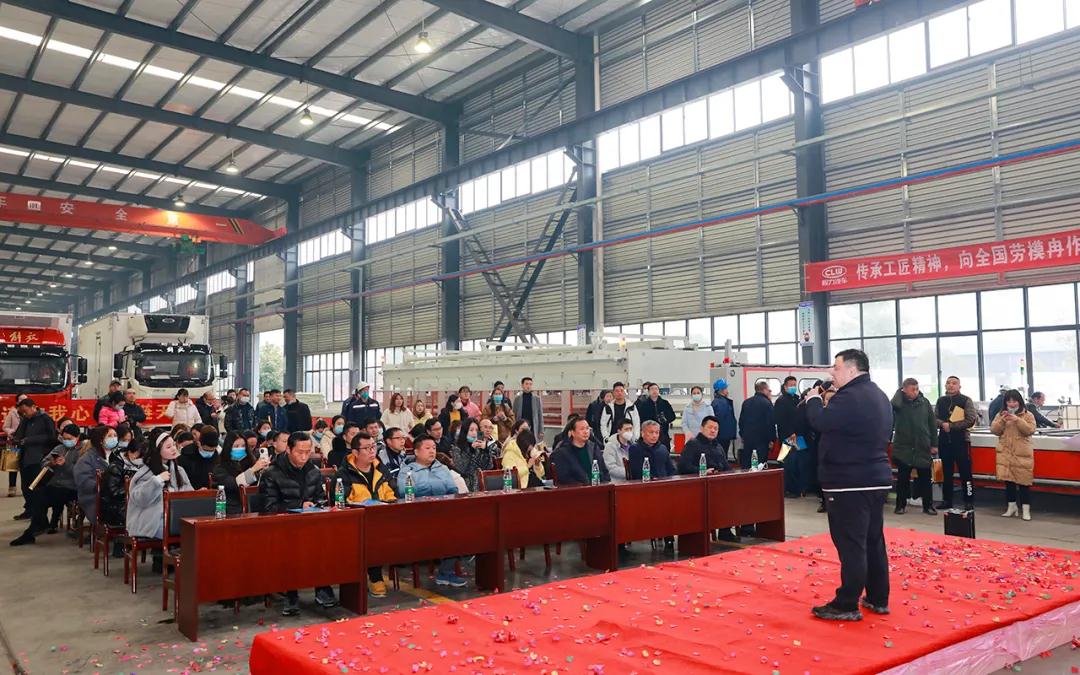 3月2日,程力特種冷鏈車專業廠花費數百萬元引進的自動化廂式車板材切割復合生產線正式剪彩投入使用,集團公司總經理程阿羅出席剪彩儀式,并發表講話。