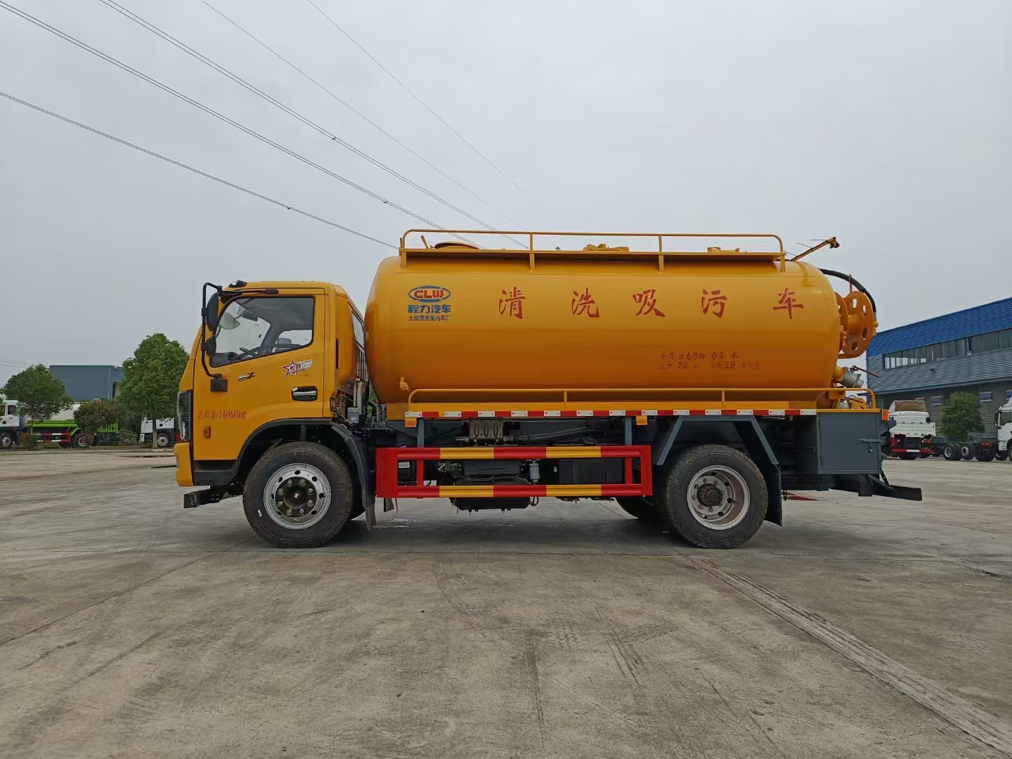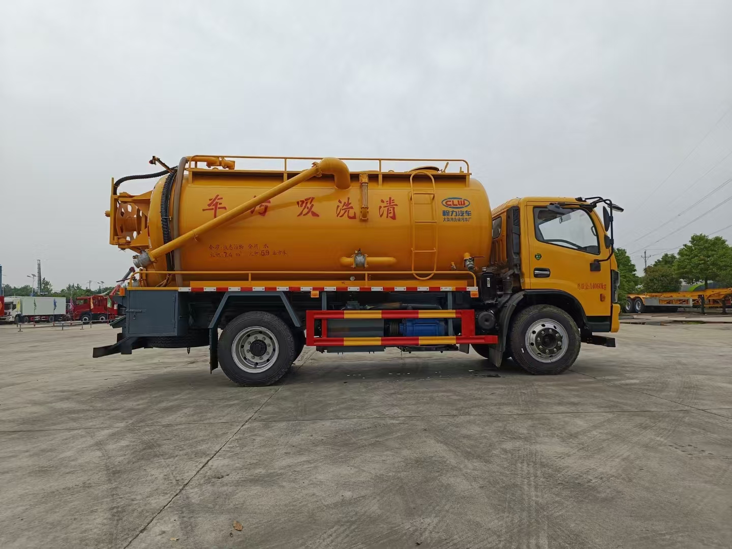 污水罐 SK-12水循環(huán)泵,水循環(huán)泵水箱為碳鋼材質(zhì),頂部防溢閥位置盡量最低,尾部開大蓋,100球閥直通罐頂吸污,吸污壓力表裝在水箱附近,罐體尾部兩側(cè)工具箱,手動油門,1根8米吸污管帶陰陽端接口,10個組合槍頭,其他廠內(nèi)標(biāo)配。