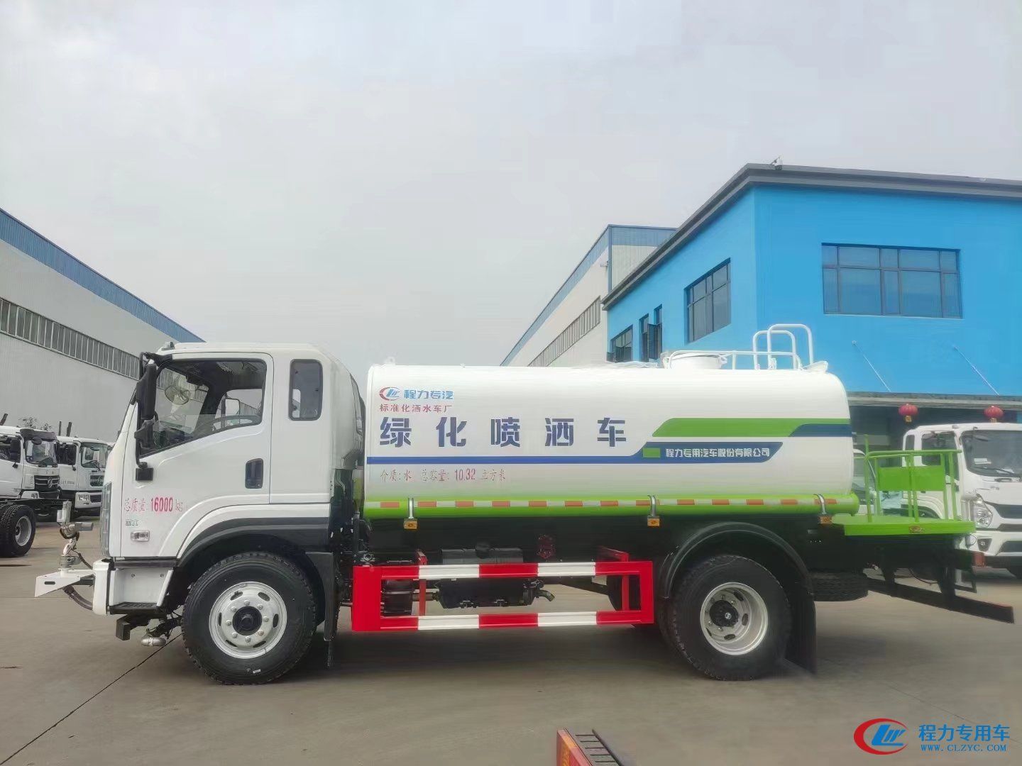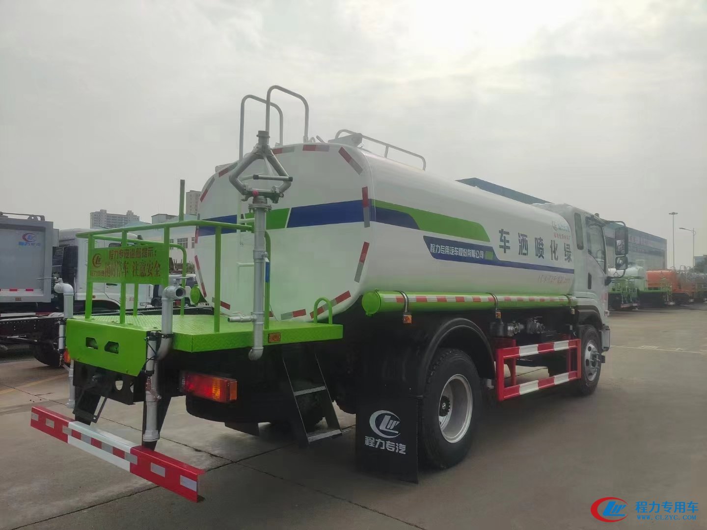 上裝配置 上裝武鋼優(yōu)質(zhì)碳鋼板,容積12立方,厚度4mm,封頭5mm,前后封頭機(jī)器人自動(dòng)焊,內(nèi)設(shè)隔浪板,帶液位計(jì), 配程力原廠大功率灑水泵,帶駕駛室電控操作,前沖后灑4個(gè)新式不銹鋼切斷閥,前沖 后灑 側(cè)噴 后高炮,后高炮可調(diào)節(jié)柱狀 雨?duì)詈挽F狀,新式?jīng)_孔工作平臺(tái),主管道加粗,副管道全采用優(yōu)質(zhì)鍍鋅管道,帶自吸自排,自流閥,消防接頭,過濾裝置,邊燈帶電,其他標(biāo)配…