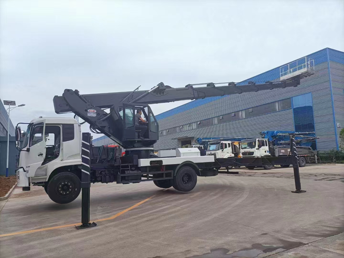 產品概述 1、 45 米高空作業車采用伸縮式直臂結構,作業臂為 7 節伸縮式,轉臺可操作,也可遙控器操作,可 360 度回轉,四液壓支腿,工作斗最大承重 200 公斤,不銹鋼圍板、花紋防滑走臺板。 2、 工作斗采用機械自平衡設計,其作用是工作時工作斗始終處于平衡狀態。 3、 夜間作業燈,操作臺上可根據客戶作業環境選裝操作照明燈,讓夜間作業更安全。 4、 電腦控制,自動限幅,危險工作報警,安全性能卓越。下車有顯示器,實時顯示整車作業工況。 5、 六邊形工作臂增加強度,同步伸縮,結構緊湊,作業效率高,作業范圍大。伸縮油缸外置,鏈條伸縮機構,更容易觀察故障點,方便維修。 6、 支腿采用前 V、后 V 型結構,受力面更大、穩定性更高;能防止車大梁變形或斷裂。支腿單獨可調,可根據作業地面環境,單獨調節每個支腿,即使地面凹凸不平,也能使整車調整到平穩狀態,所有支腿裝有支腿報閃燈,用于作業時支腿示廓、發出光報警信號。 7、 四個垂直支腿油缸裝有雙向液壓鎖,其作用是油缸到達所需位置后,將油缸鎖住不動,以防造成事故。工作臂上裝有雙向平衡閥,使工作臂運行更平穩。 8、 車輛配制雙向液壓鎖、雙向帶鎖平衡閥、液壓油缸、發動機啟停應急泵、操作系統及其控制電腦等主要部件均采用國內知名品牌,核心部件采用進口件。換向平穩,操作靈活方便;支腿與工作臂互鎖,安全可靠,防止誤操作。